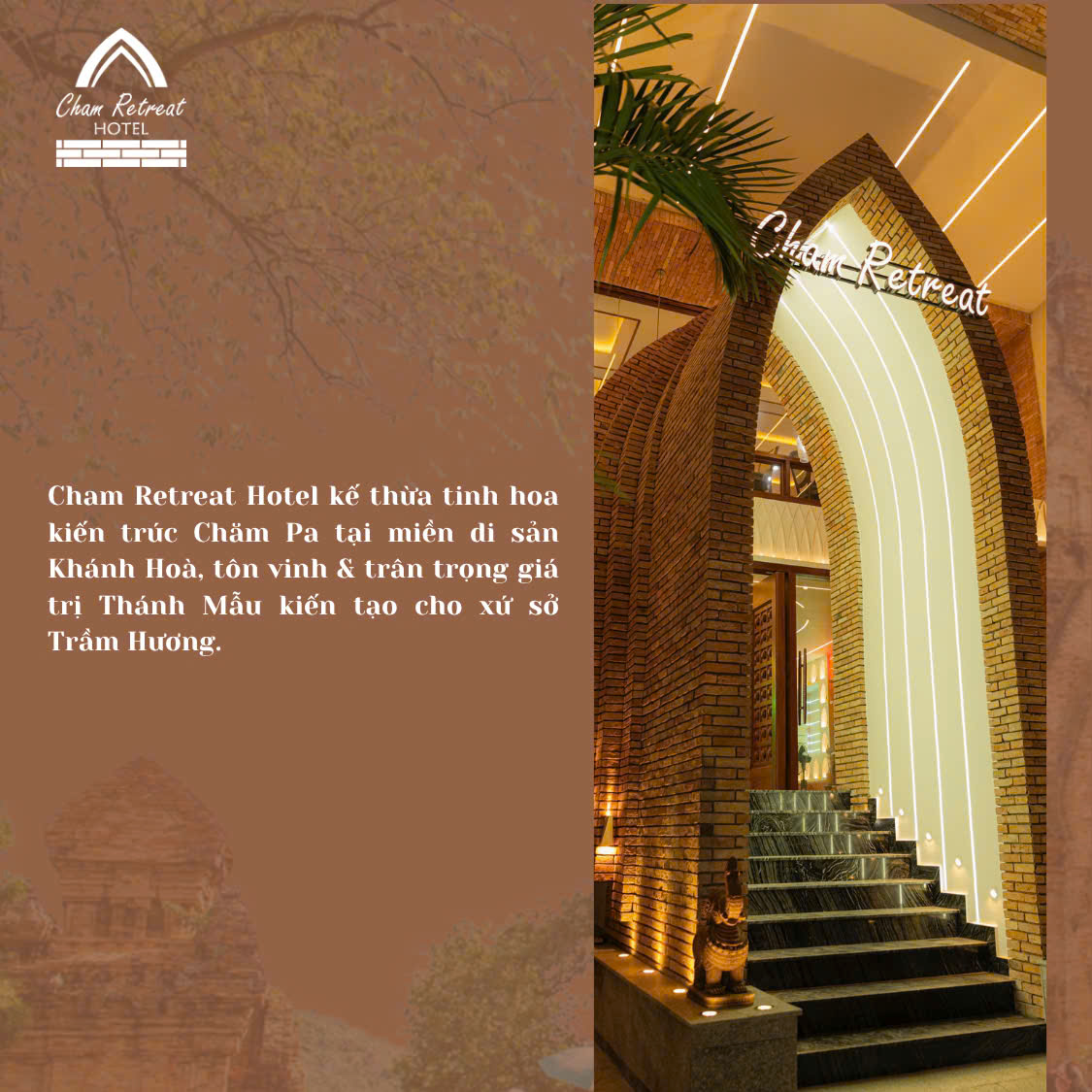 Giữa nhịp thở dịu dàng của biển trời Nha Trang, Cham Retreat Hotel là khoảng lặng an yên dành cho những tâm hồn tìm kiếm sự thư thái. Lấy cảm hứng từ kiến trúc Chămpa cổ, khách sạn mang trong mình nét đẹp giao thoa giữa truyền thống và hiện đại - nơi từng đường cong, gam màu và chất liệu đều kể một câu chuyện về văn hoá bản địa.
